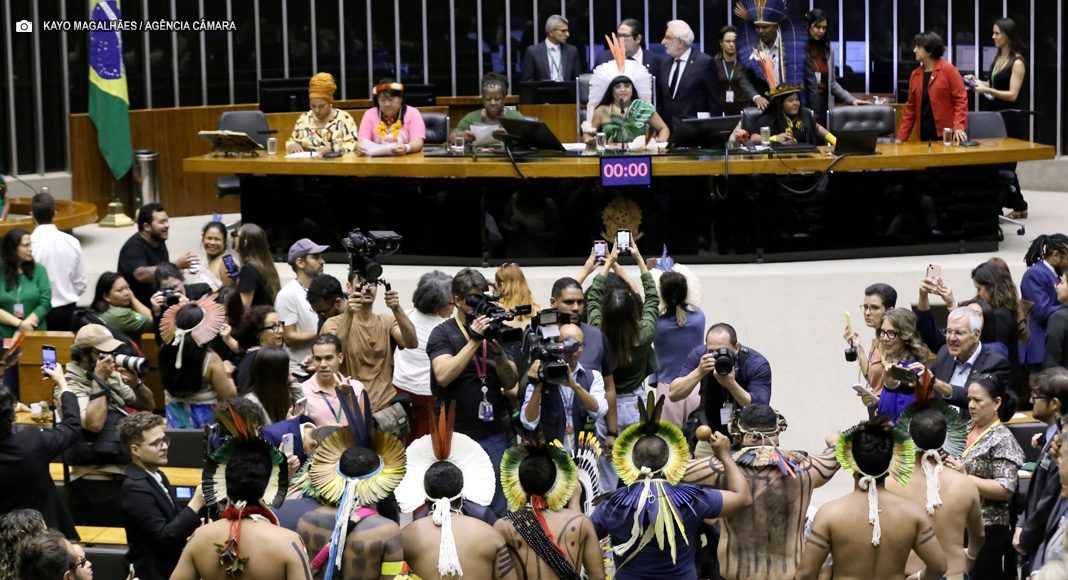 A Câmara dos Deputados promoveu sessão solene nesta terça-feira (8) para celebrar o 21º Acampamento Terra Livre, realizado em Brasília. Autora do pedido para realização da sessão, a deputada Célia Xakriabá (Psol-MG) falou para um plenário repleto de indígenas. “Este é o Congresso Nacional que nós sonhamos para o futuro, este é o Congresso de um Brasil que começa por nós. Nós somos os primeiros brasileiros e, no entanto, somos os últimos a chegar ao Congresso Nacional”, disse ela.