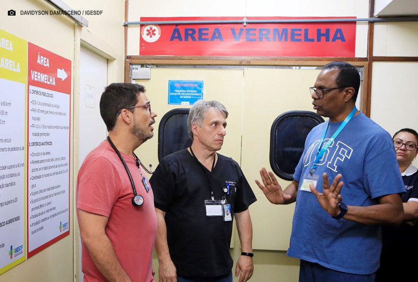 instrutores do European Trauma Course conheceram as instalações e o funcionamento do Centro de Trauma do Hospital de Base, uma referência no país | Foto: Davidyson Damasceno/IgesDF