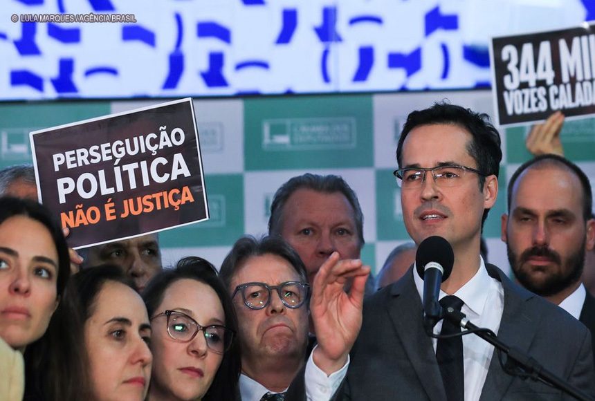 Acompanhado de deputados de oposição ao governo, como Eduardo Bolsonaro (PL-SP), Bia Kicis (PL-DF), Carolina De Toni (PL-SC), Dallagnol atacou adversários políticos, como os do PT – legenda que apresentação ação contra eleição do deputado e que resultou na cassação, ministros do TSE e também parlamentares investigados por ele durante a Operação Lava Jato, como o presidente Luiz Inácio Lula da Silva.