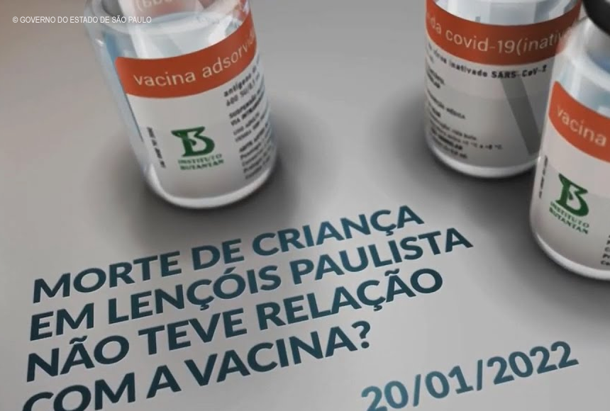 “O Centro de Vigilância Epidemiológica da Secretaria de Estado da Saúde informa que concluiu nesta quinta-feira (20) a investigação que descartou o evento adverso pós-vacinação na criança de dez anos do município de Lençóis Paulista. Não existe relação causal entre a vacinação e quadro clínico apresentado”, afirma, em nota, o governo de São Paulo.