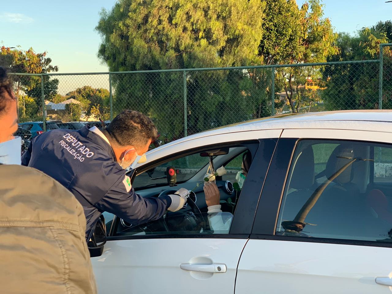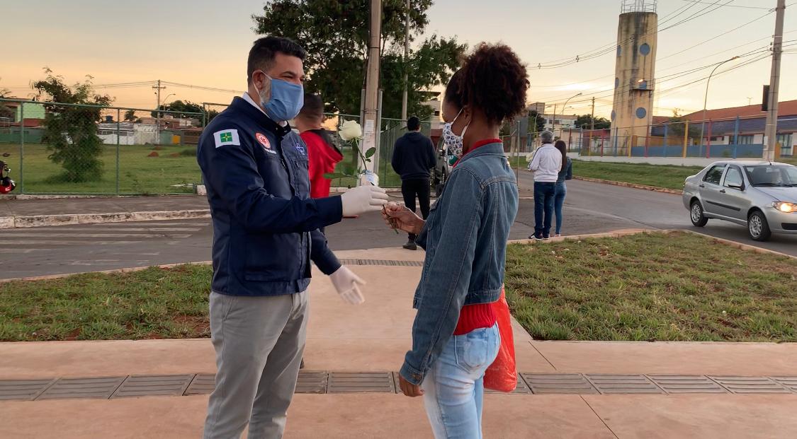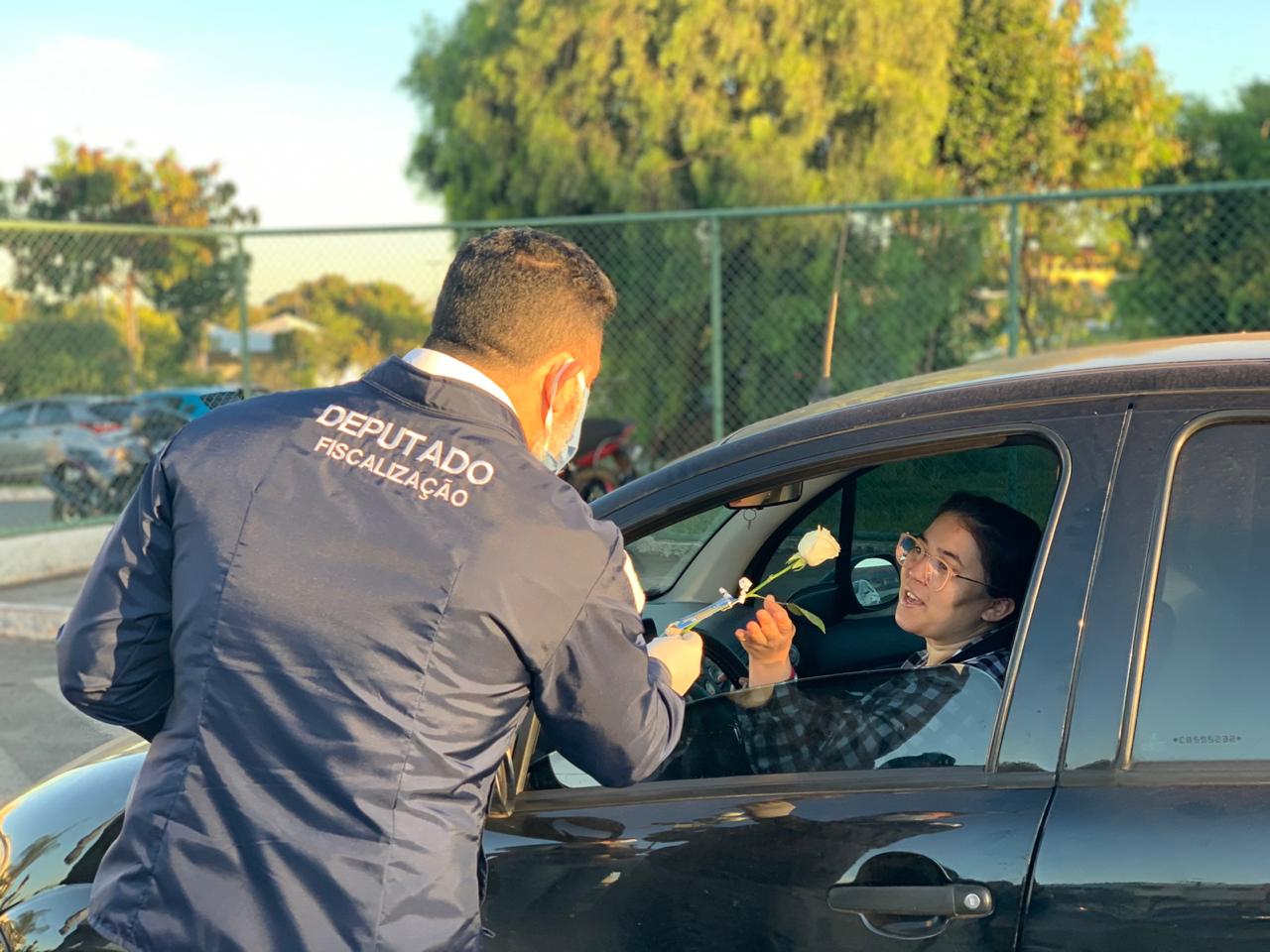 Em decorrência da pandemia do coronavírus (Covid-19), as equipes responsáveis por atuar na distribuição das flores, aos profissionais de enfermagem, fazem uso de Equipamentos de Proteção Individual (EPI), com máscaras e luvas.