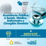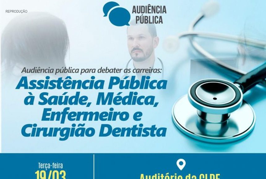 Iniciativa do deputado distrital, Jorge Vianna (Podemos), a Câmara Legislativa do DF (CLDF), realiza, as 10 horas da manhã, de terça-feira (19), Audiência Pública para debater as carreiras Assistência Pública a Saúde (APS), Médica, Enfermeiro e Cirurgião Dentista, da Secretaria de Estado de Saúde do DF (SES-DF).
