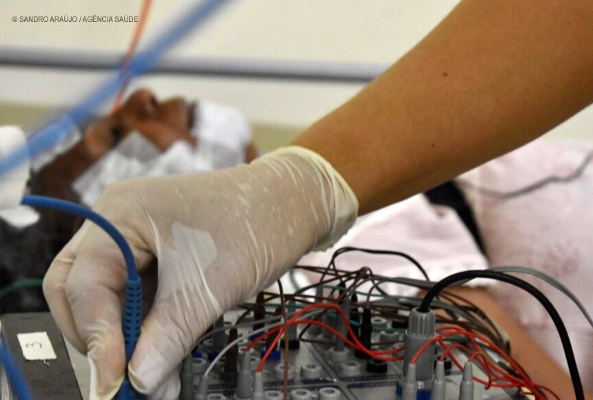 A polissonografia é o principal exame realizado. Esse procedimento consiste na aplicação de um conjunto de eletrodos e sensores no corpo do paciente para monitorá-lo enquanto dorme. Os dispositivos registram várias respostas do organismo, como a atividade cerebral, os movimentos oculares e a atividade elétrica de nervos e músculos.