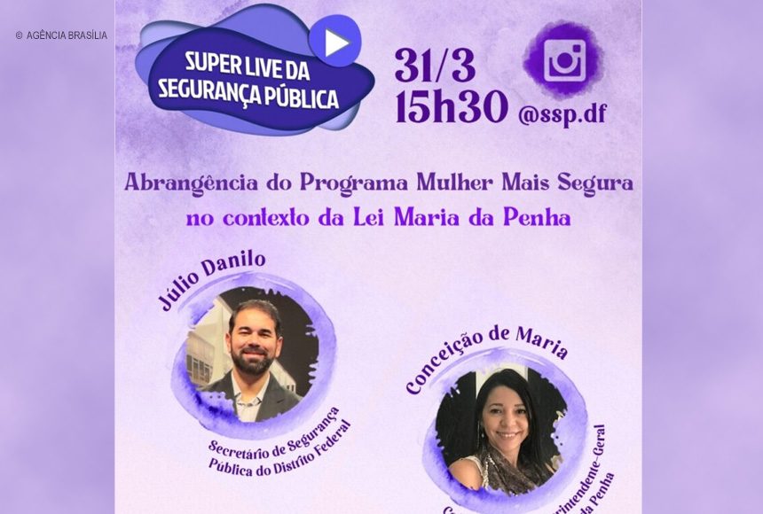 O balanço das ações voltadas ao Mês da Mulher, por meio do programa Mulher Mais Segura – lançado este mês pela Secretaria de Segurança Pública (SSP) – e o alcance da Lei Maria da Penha serão os temas abordados em uma live com transmissão ao vivo, nesta quarta (31), às 15h30. Haverá transmissão simultânea pelo perfil da secretaria no Instagram. Participam o secretário de Segurança Pública, Júlio Danilo, e a cofundadora do Instituto Maria da Penha (IMP), Conceição de Maria.