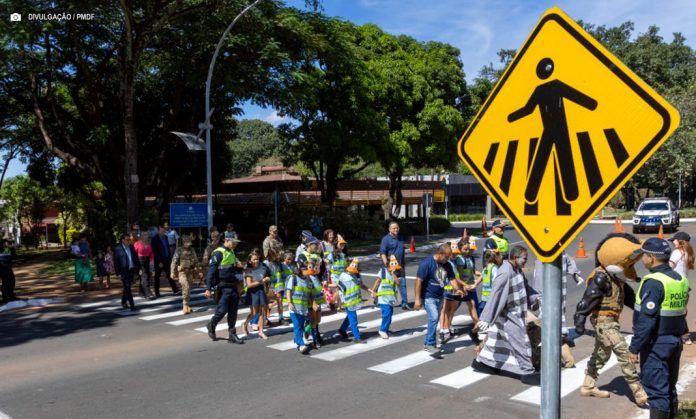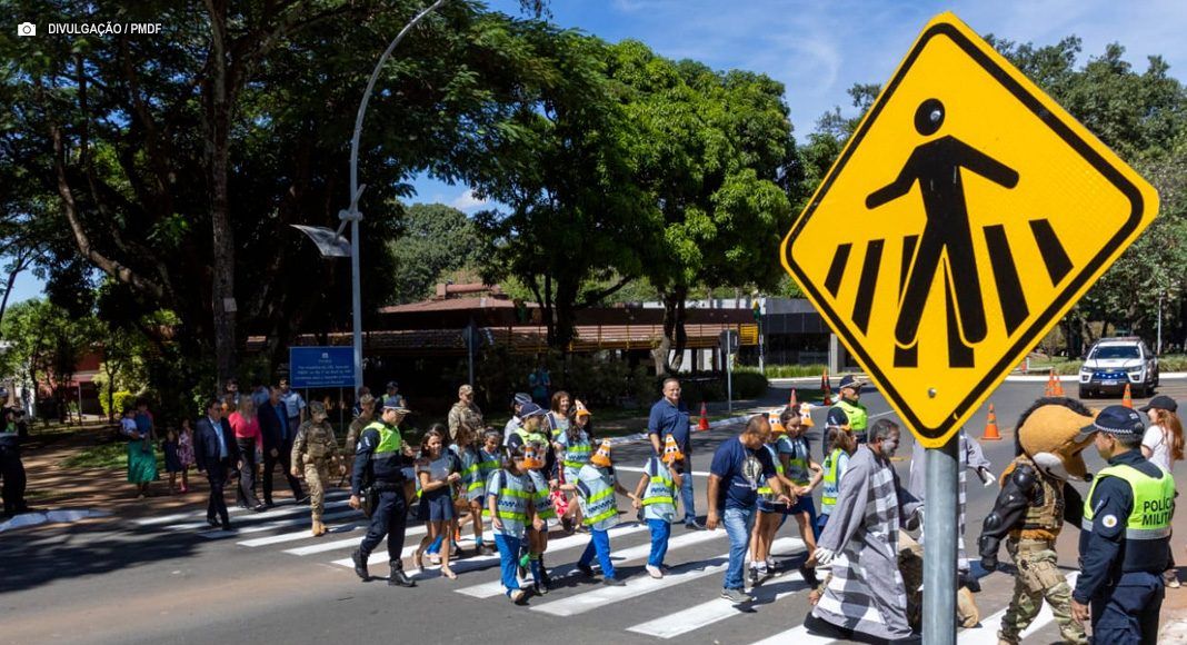 A quadra 307/308 Sul, local da primeira faixa de pedestre implantada no DF, foi palco do evento, que contou com a presença do grupo de teatro Rodovia, da Polícia Militar, e dos alunos da Escola Classe 308. Os estudantes participaram de uma barreira educativa para alertar os motoristas da região sobre as regras básicas de trânsito. Por meio de ações como essa, a PMDF busca sensibilizar a população, motoristas e pedestres, para o respeito mútuo no trânsito, tornando as vias mais seguras e propícias à convivência pacífica.