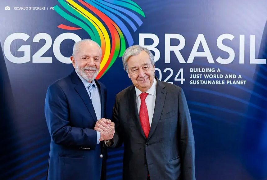 Em nota, a Presidência da República informou que Lula e o secretário-geral conversaram sobre o G20 Social, a programação da Cúpula do G20, o andamento da COP29 e as negociação sobre clima e meio ambiente que acontecem em Baku (Azerbaijão), em paralelo às atividades do G20.