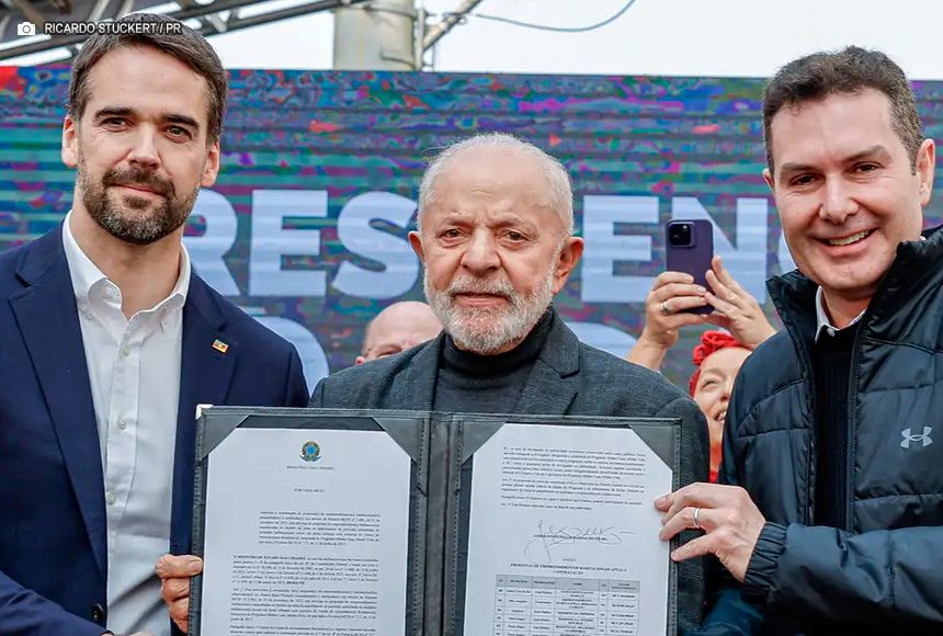 Lula está no Rio Grande do Sul realizando entregas ligadas, também, à reconstrução do estado após as enchentes do mês de maio deste ano. Mais cedo, o presidente entregou moradias do Minha Casa, Minha Vida, em Porto Alegre e, ainda hoje, segue para São Leopoldo, onde será inaugurado um novo complexo viário.