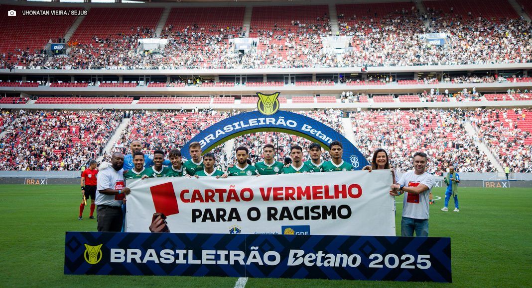 A Arena BRB Mané Garrincha foi palco de um momento marcante neste domingo (4), minutos antes da partida entre Vasco e Palmeiras, válida pela 7ª rodada do Campeonato Brasileiro. Mais de 40 mil torcedores ergueram simultaneamente cartões vermelhos contra o racismo, em um gesto simbólico que marcou o lançamento da campanha “Cartão Vermelho para o Racismo”, idealizada pela Secretaria de Justiça e Cidadania do Distrito Federal (Sejus-DF), em parceria com a Confederação Brasileira de Futebol (CBF).