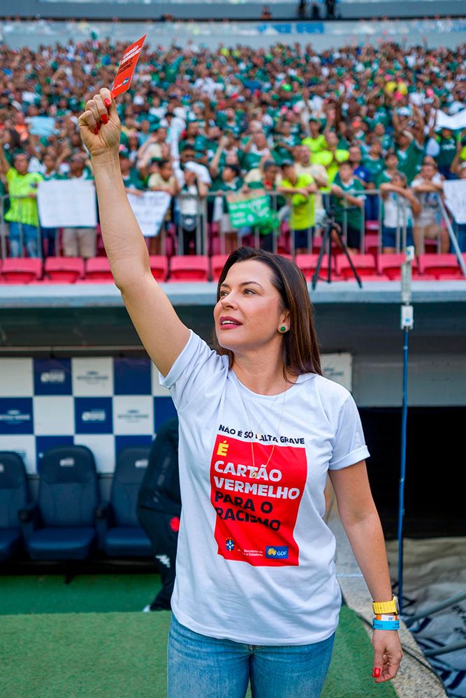 Idealizadora da campanha, a secretária de Justiça e Cidadania do DF, Marcela Passamani, destacou a importância de usar o futebol como espaço de conscientização e transformação social. “Essa campanha nasce de uma preocupação urgente: combater o racismo, que é uma emergência dentro da nossa sociedade. O lançamento simboliza a força de uma sociedade que não aceita mais o silêncio diante do preconceito. Ver milhares de torcedores, crianças, famílias inteiras unidas por essa causa foi emocionante”, afirmou.