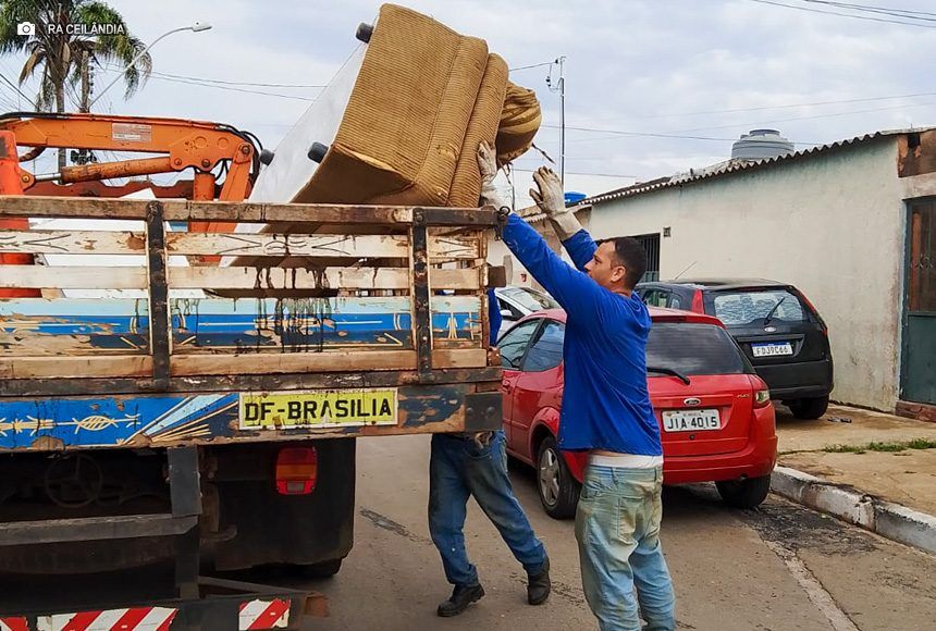 A coleta ocorre todas as terças e quintas-feiras e é feita por dois caminhões com capacidade de até 7 toneladas cada. A população pode agendar o recolhimento pelos números (61) 3550-6231 ou (61) 3550-6271, e a administração organiza o atendimento conforme a demanda, com empenho para realizar a coleta ainda na mesma semana, evitando que os materiais permaneçam expostos.