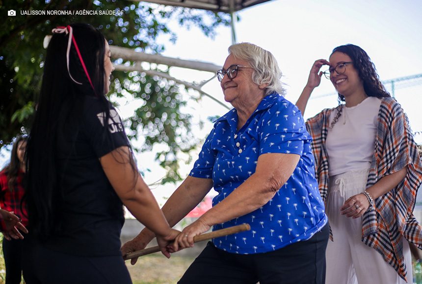 Além de oferecerem força e equilíbrio, os circuitos também atuam como forma de interação social entre os idosos. Na UBS 6 de Ceilândia, a atividade é realizada às segundas e sextas-feiras no período vespertino, organizada pela equipe multidisciplinar (e-Multi) de fonoaudiólogos, psicólogos, fisioterapeutas e terapeutas ocupacionais. Durante os exercícios, os profissionais da unidade observaram como os participantes começavam a interagir e a formarem grupos de amizades. “Eles criam uma rede de apoio e compartilham experiências”, aponta a psicóloga Flora Teixeira Morta de Paula.