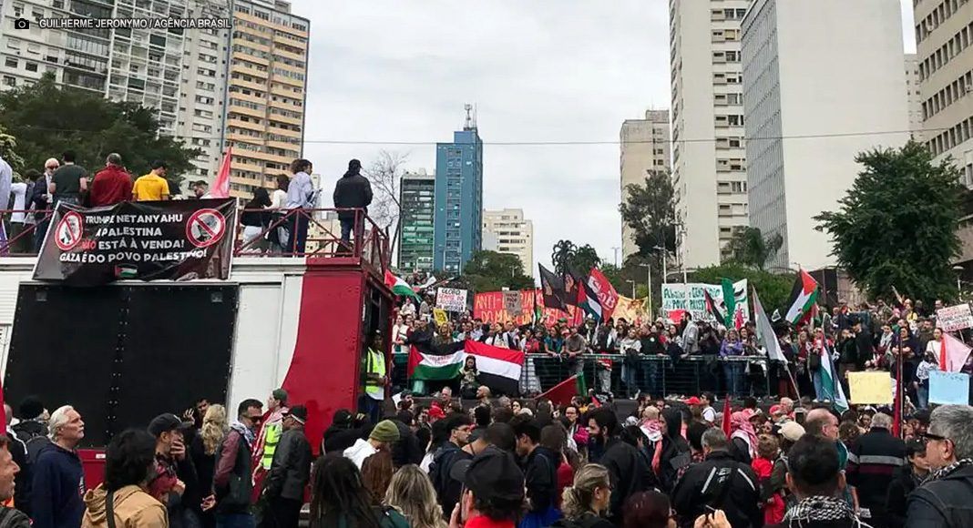 Milhares de pessoas participam na tarde deste domingo (15), na capital paulista, de marcha em apoio ao povo palestino na Faixa de Gaza, que enfrenta crise humanitária diante dos ataques militares de Israel. A mobilização tem o apoio de organizações de mobilização popular, sindicatos e políticos de esquerda.