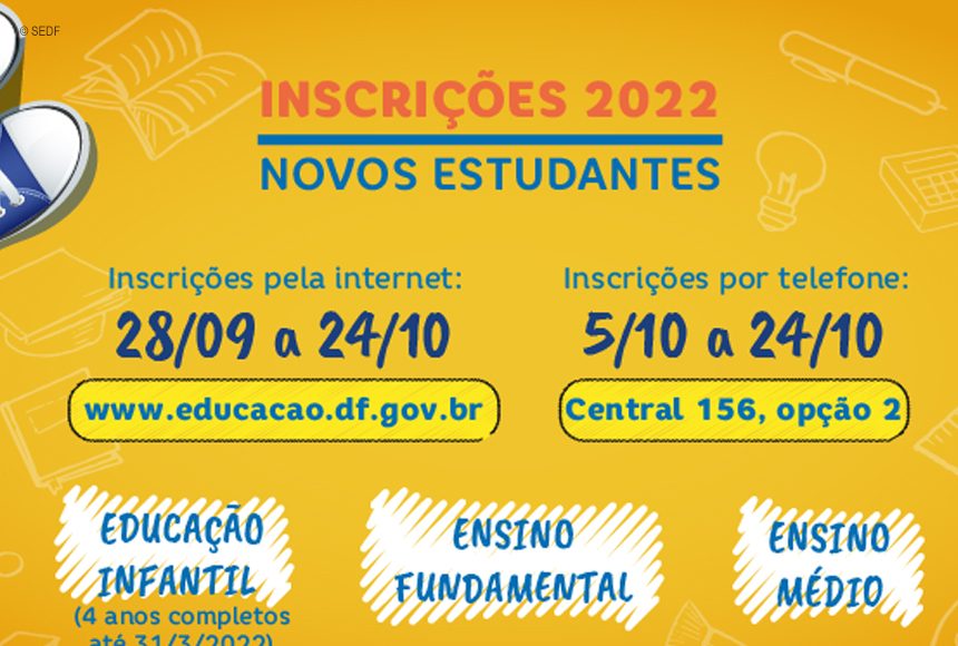 As inscrições para o ano letivo de 2022 são somente para novatos da rede pública na educação infantil (pré-escola), no ensino fundamental e no ensino médio.