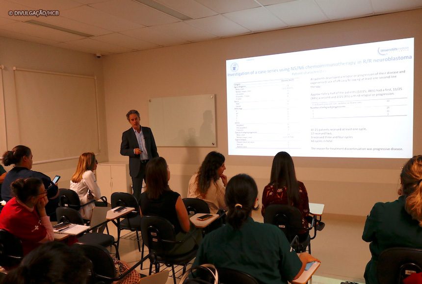 O oncologista pediatra Holger Lode, chefe da Pediatria, Oncologia e Hematologia Pediátrica na University Medicine de Greifswald, na Alemanha, teve um encontro com os profissionais que atuam junto aos pacientes. Médicos, farmacêuticos, equipe de enfermagem, nutricionistas, biomédicos e assistentes sociais tiveram acesso a informações, ainda não publicadas, sobre os processos utilizados no tratamento do neuroblastoma que apontaram resultados obtidos com o uso da medicação Dinutuximab beta.