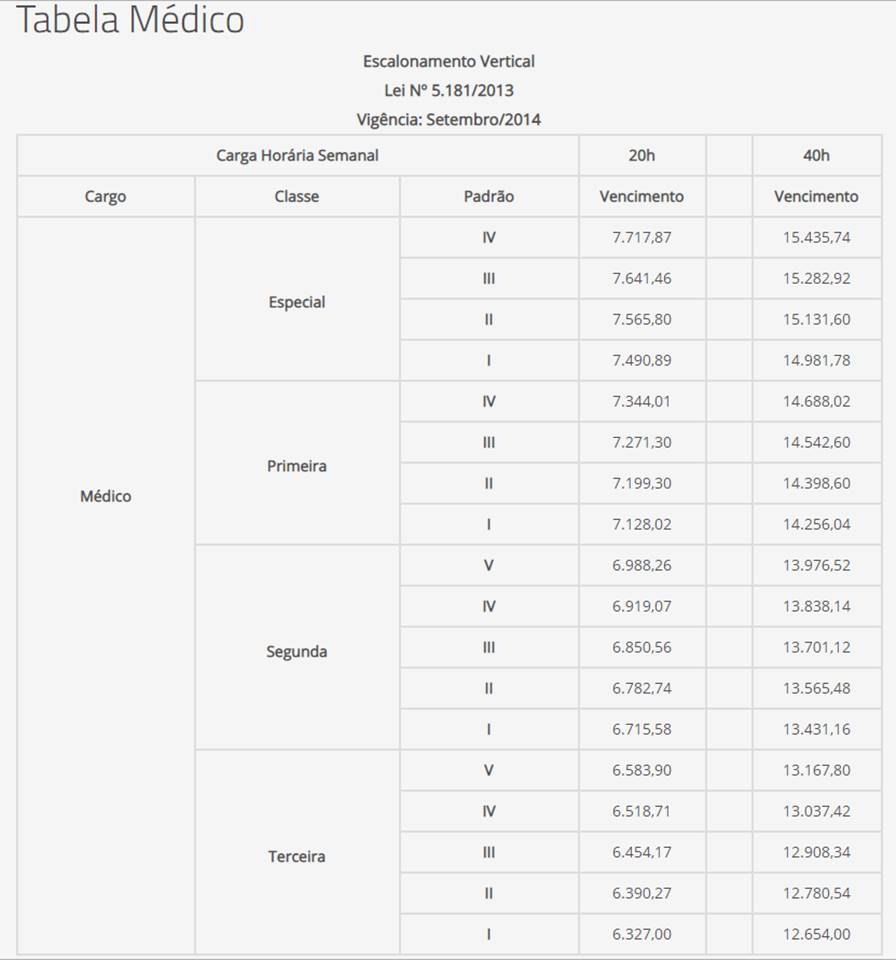 Em se tratando de cargos de chefia no quadro médico I, há sinalização de teto de R$ 20.428,61 para 20 horas e 40.854,00 para 40 horas semanais.