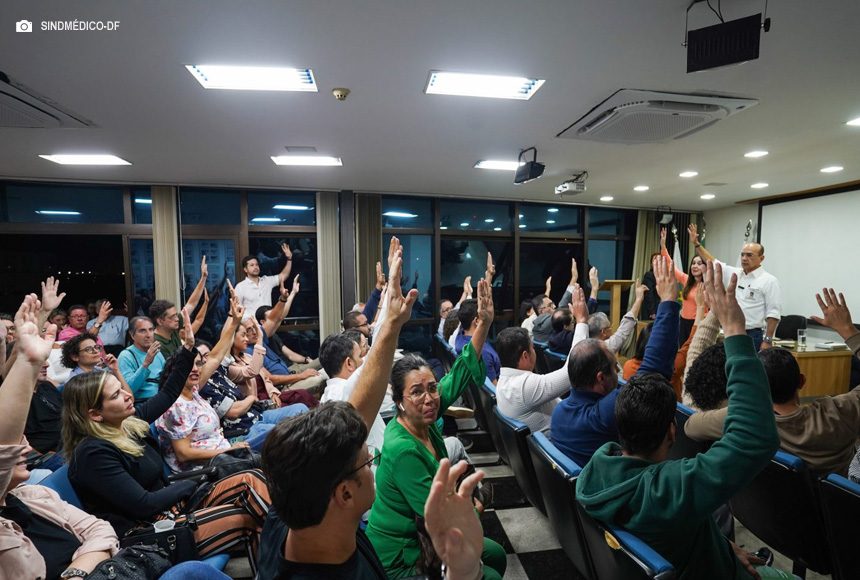 No auditório do Sindicato dos Médicos do Distrito Federal, os médicos do serviço público de saúde aprovaram o indicativo de greve da categoria. Em Assembleia Geral Extraordinária, realizada nessa quarta-feira (14), o SindMédico-DF estabeleceu um prazo de cinco dias, a partir de 19 de agosto, para que o governador receba a comissão de negociação da categoria. Após esse período, no dia 26, uma nova assembleia será convocada para discutir as propostas apresentadas pelo governo ou definir a data de início da greve.