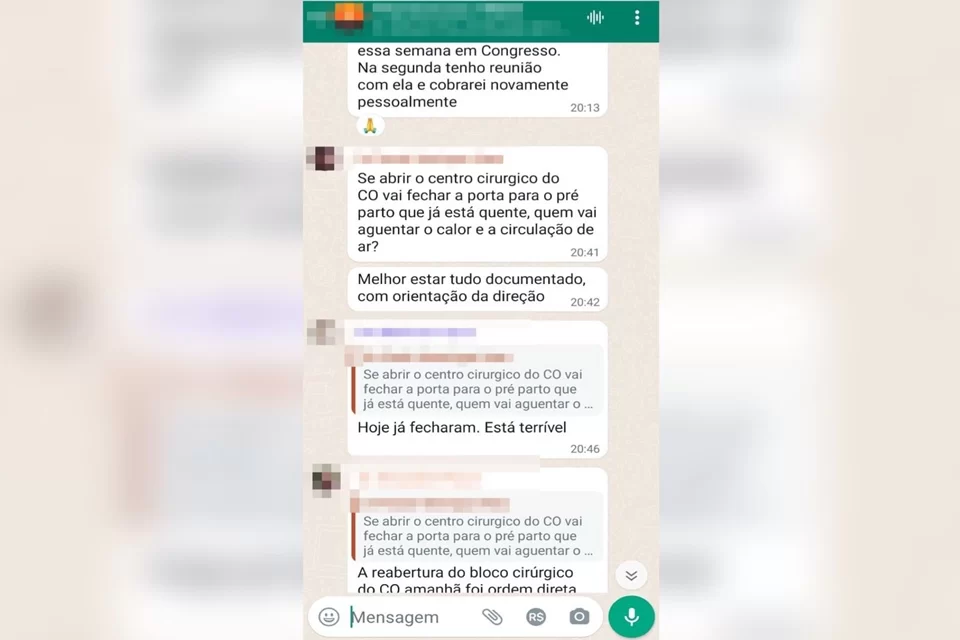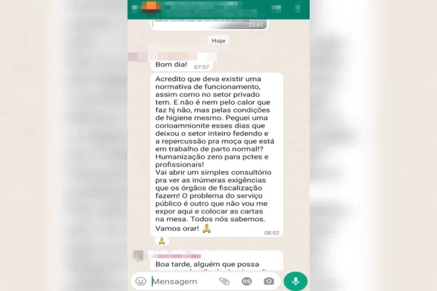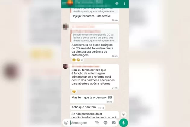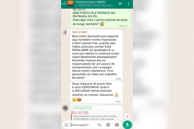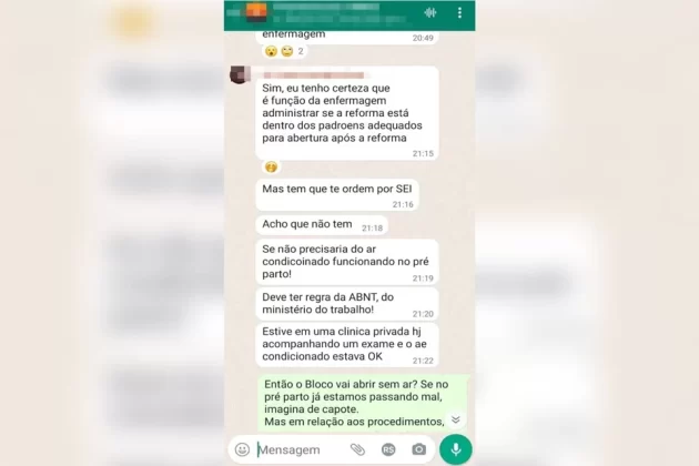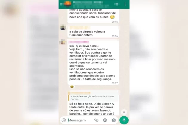 A médica compartilhou com o Metrópoles, conversas entre funcionários sobre a situação do Hmib. Uma das médicas conta que passou mal ao suar excessivamente e disse que a “situação está insalubre ao quadrado”.