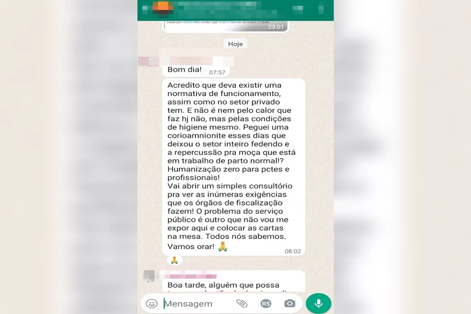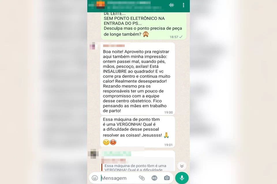 Segundo a mulher, alguns funcionários já passaram mal e até chegaram a desmaiar. Ela também ressalta que a situação é especialmente pior no Centro Obstétrico.