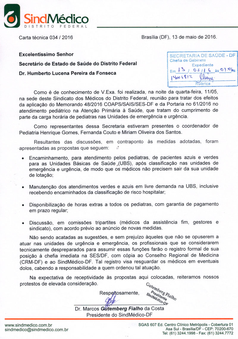 “Entende-se que há uma vontade de contornar os problemas na assistência pediátrica, mas as medidas não são suficientes para resolver as deficiências do atendimento pediátrico e, em não poucas situações, criam novas demandas”, ponderou o presidente do SindMédico-DF, Gutemberg Fialho.