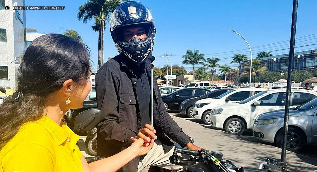 Nas ações promovidas pelo Detran-DF no programa Entregadores de App, a antena corta-pipa tem sido entregue como brinde aos motofretistas e mototaxistas | Foto: Eduardo Carvalho/Detran-DF