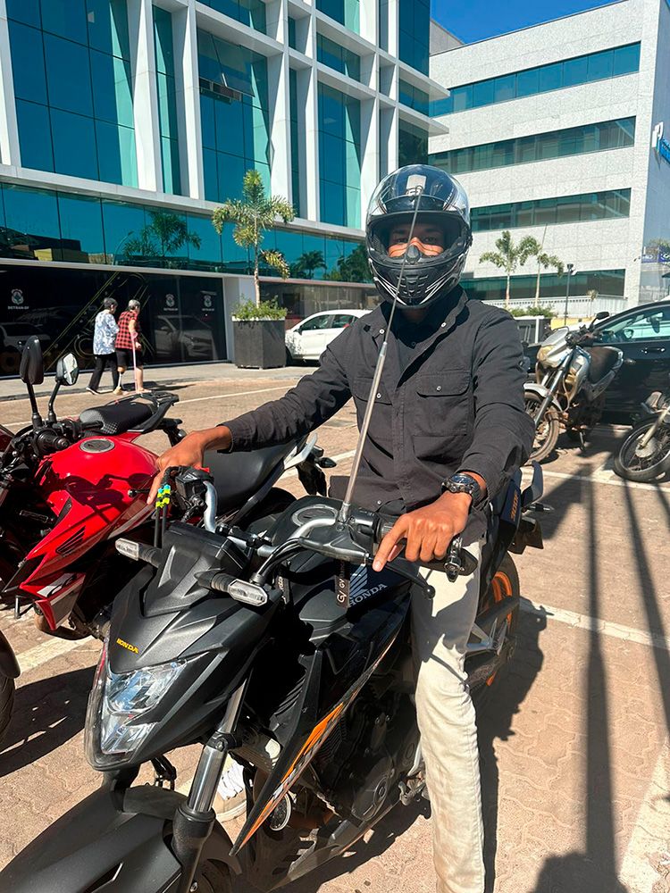 Motociclistas de aplicativo recebem antena corta-pipas em ação educativa