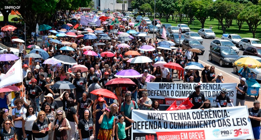 O mesmo caminho segue os professores filiados ao Sindicato dos Professores do DF (Sinpro-DF) que também permanecem em greve e pretendem da pauta de reivindicações. Com assembleia marcada para a manhã desta quarta-feira (11/Nov), cancelada após tumulto em frente ao Palácio do Buriti, a categoria que colocou cerca de 5.000 servidores na Praça do Buriti, permanece mobilizada em frente ao Executivo.