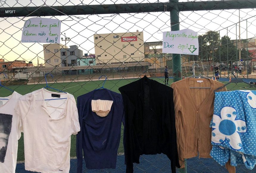 A rede intersetorial de São Sebastião replica a campanha “Quem tem, põe! Quem não tem, tira!”. O objetivo é arrecadar roupas de frio para a população em situação de rua da cidade. A primeira ação foi realizada nesta terça-feira, 7 de julho, com a exposição de peças doadas na grade do Campo Central.