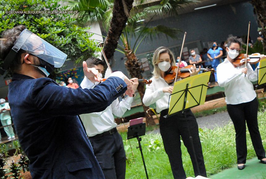 No Dia Mundial da Saúde, celebrado nesta quarta-feira (7), a Orquestra Filarmônica de Brasília realizou o Concerto do Afeto para homenagear os profissionais da saúde que estão na linha de frente no combate ao novo coronavírus. A apresentação ocorreu ao meio-dia desta quarta, no jardim central do Hospital Regional da Asa Norte (Hran).