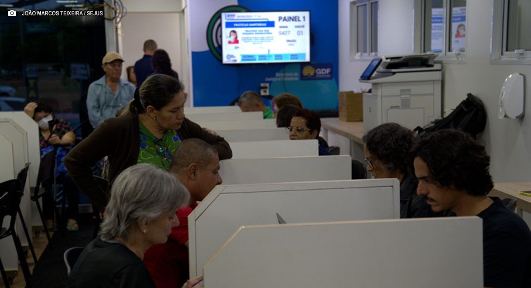 No Terraço Shopping, foi possível emitir e atualizar documentos, regularizar pendências, negociar débitos e solicitar assistência jurídica e psicossocial, em parceria com órgãos instituições como BRB Mobilidade, Caesb, Defensoria Pública DF, Neoenergia, Detran-DF, Procon, Receita Federal e outros. Serviços foram oferecidos das 16h às 22h.