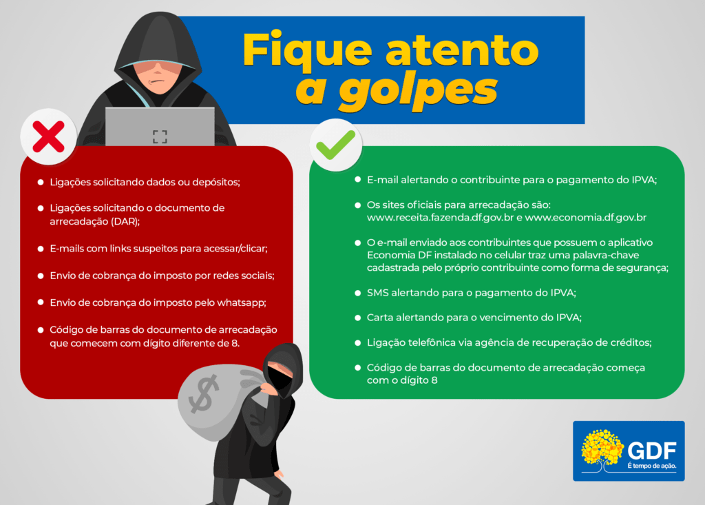 “Vale lembrar que o governo não pede dados bancários ou que sejam feitos depósitos. Também não aborda o contribuinte já oferecendo documento de arrecadação do tributo. Isso só acontece mediante solicitação expressa do contribuinte. Os nossos comunicados não possuem links para acessar o documento de arrecadação (DAR) e os documentos são feitos de uma forma que oriente o contribuinte a acessar o site da secretaria”, acrescenta Eduardo Franco.