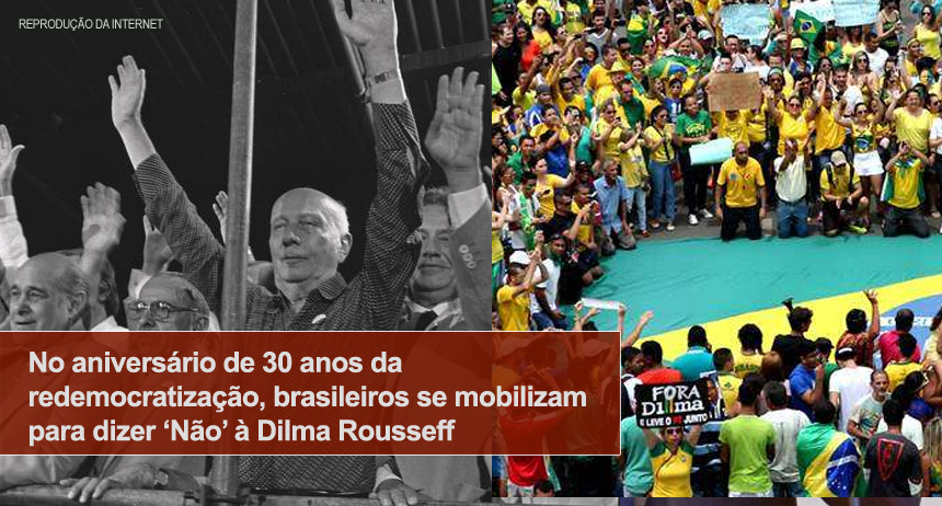 No aniversário dos 30 anos da retomada da democracia brasileira, milhares de brasileiros saíram às ruas desde a manhã de Domingo (15/Mar), para pedir por mudanças. Entre dados estimados pela Polícia Militar e por grupos organizadores mais de 1,5 milhões de pessoas tomaram as principais capitais do país para se manifestarem.
