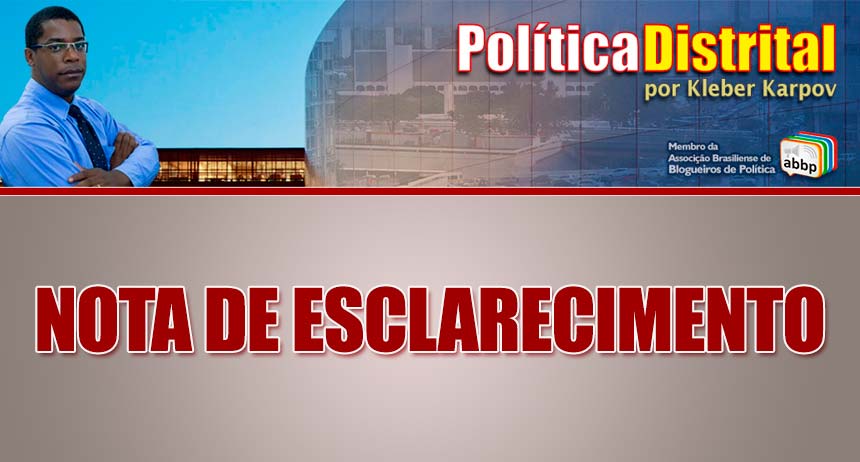No intuito de manter a transparência e a lisura da produção de matérias realizadas, Política Distrital esclarece que o jornalista, Kleber Karpov é o editor-chefe do referido Blog e responde única e exclusivamente, por ser pautado, contatar fontes e personagens para fazer as devidas apurações de matérias que porventura venha a produzir e/ou publicar no website.