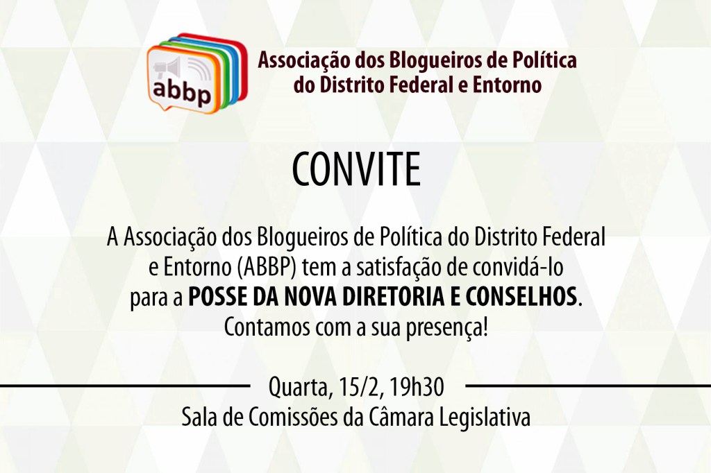A Associação dos Blogueiros de Política do Distrito Federal e Entorno (ABBP) empossará sua nova diretoria na próxima semana. O evento será realizado na quarta-feira, 15/2, às 19h, na Sala de Comissão da Câmara Legislativa do Distrito Federal.