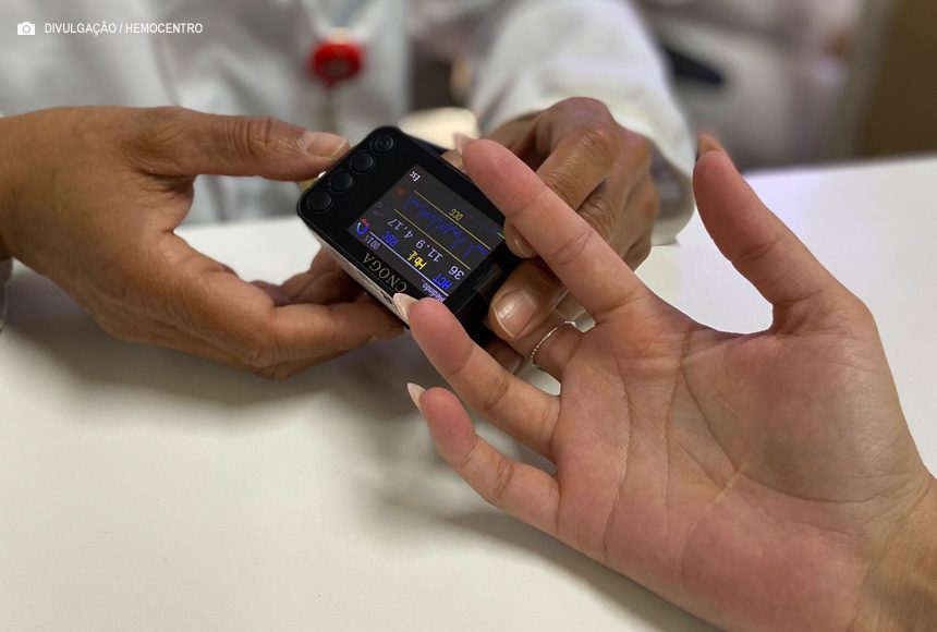 A avaliação da hemoglobina é um procedimento necessário para detectar anemia e faz parte da pré-triagem clínica, uma das etapas do ciclo da doação de sangue no Hemocentro. Além disso, o aparelho também permite, ao mesmo tempo, aferir a pressão arterial e medir a frequência cardíaca do doador.