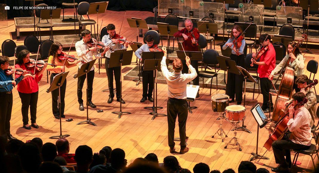 A Secretaria de Educação do Distrito Federal (SEEDF) promoveu, nessa terça-feira (5), um grande encontro entre 440 estudantes da rede pública de ensino e a Orquestra Sinfônica Amazing, de Portugal, na Sala Martins Pena, no Teatro Nacional Claudio Santoro.