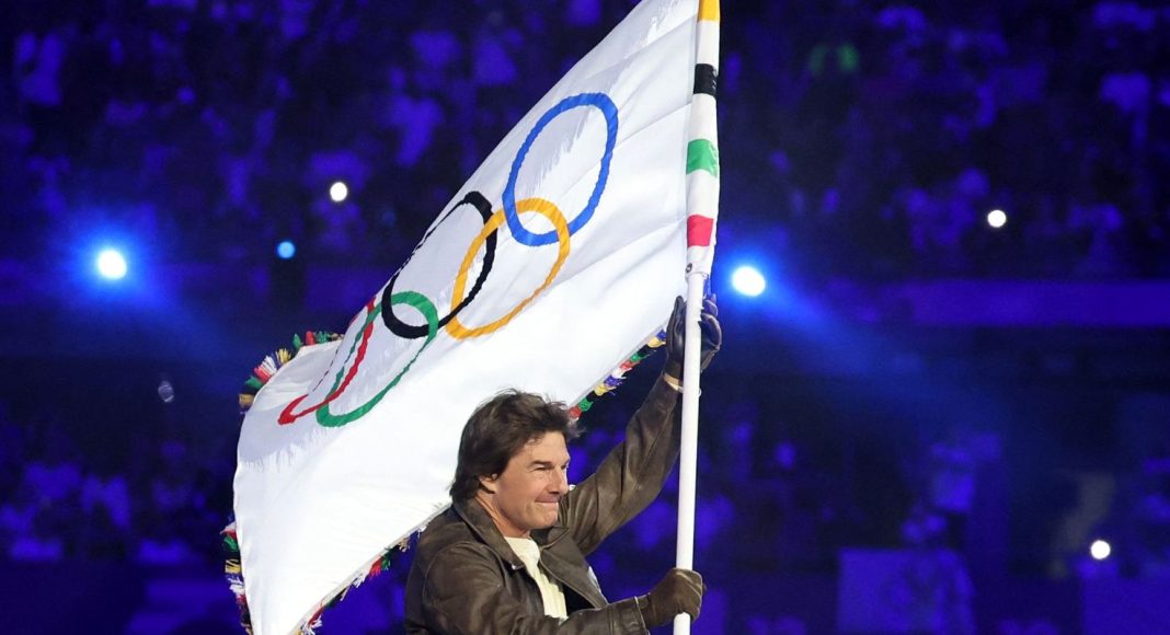 O trecho norte-americano da cerimônia contou com uma entrada triunfal do ator Tom Cruise, que desceu uma tirolesa ao estilo do personagem Ethan Hunt, interpretado por ele em ‘Missão Impossível’. Nesta parte, a cidade exibiu suas credenciais em um vídeo gravado, que começou com Cruise carregando a bandeira olímpica até Los Angeles de moto e terminou com apresentações da banda Red Hot Chili Peppers, da cantora Billie Eilish e do rapper Snoop Dogg, acompanhado pelo também rapper Dr.Dre.