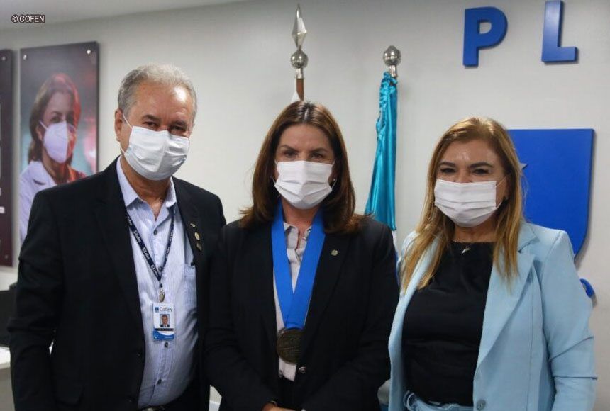 A reunião também foi marcada por agraciamentos. Durante o encontro, o coordenador da Comissão Nacional de Enfermagem Forense (CNEF/Cofen), Antônio Coutinho, homenageou Carmen Zanotto, Gilmar Junior e o presidente do Conselho Regional de Enfermagem do Distrito Federal (Coren-DF), Elissandro Noronha, com a entrega da Medalha Forense, representando o reconhecimento pelo incentivo e apoio no desenvolvimento desta área de atuação da profissão no Brasil. Os presidentes dos regionais receberam a honraria após a instituição da Comissão de Enfermagem Forense em seus respectivos conselhos. Zanotto, por sua vez, foi homenageada pela criação do PL 3105/21, que garante atendimento às mulheres vítimas de violência por uma equipe de saúde que seja composta por um enfermeiro forense.