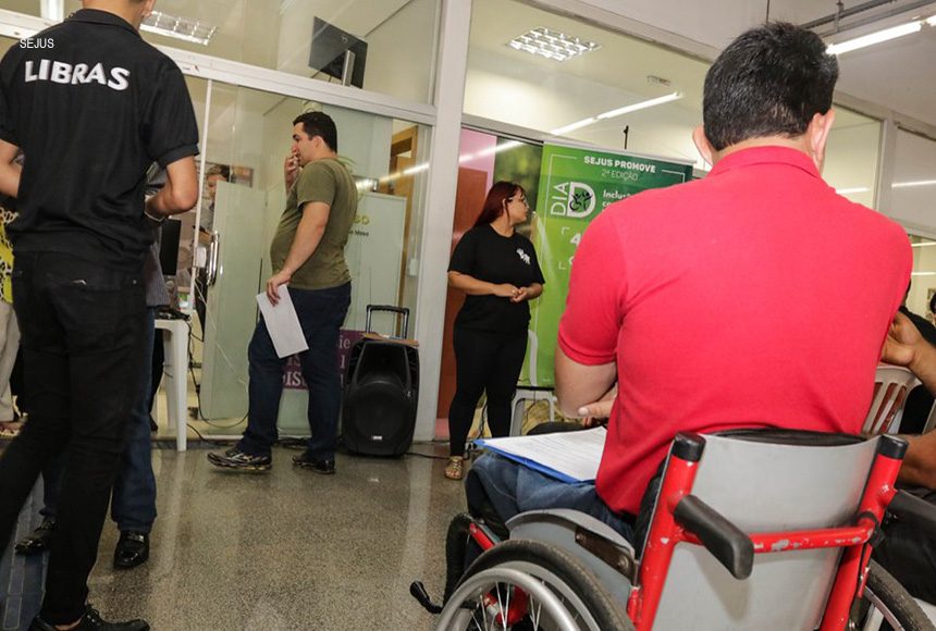 No evento, a Sejus reúne as empresas que dispõe de vagas e as pessoas com deficiência que estão em busca de trabalho, apoiando na realização do processo seletivo. “Com essa ação, a Sejus espera contribuir para a ampliação do número dessas pessoas no mercado formal de trabalho e incentivar o cumprimento da Lei 8213/91, que estabelece a reserva legal de vagas nas empresas para contratação de trabalhadores com deficiência”, explicou o secretário de Justiça e Cidadania, Gustavo Rocha, que marcou presença no evento para acompanhar as ações.