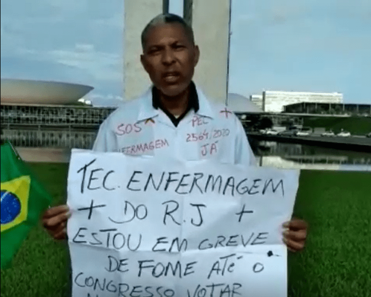 O técnico em enfermagem André Prazeres viajou do Rio de Janeiro para Brasília, no início deste mês para pedir que os deputados aprovem o projeto o quanto antes. O profissional chegou a fazer uma greve de fome de dois dias como protesto, com o intuito de sensibilizar os parlamentares. Segundo o enfermeiro, o ministro da Saúde, Marcelo Queiroga chegou a demonstrar apoio à enfermagem em uma conversa rápida na portaria do Ministério da Saúde.