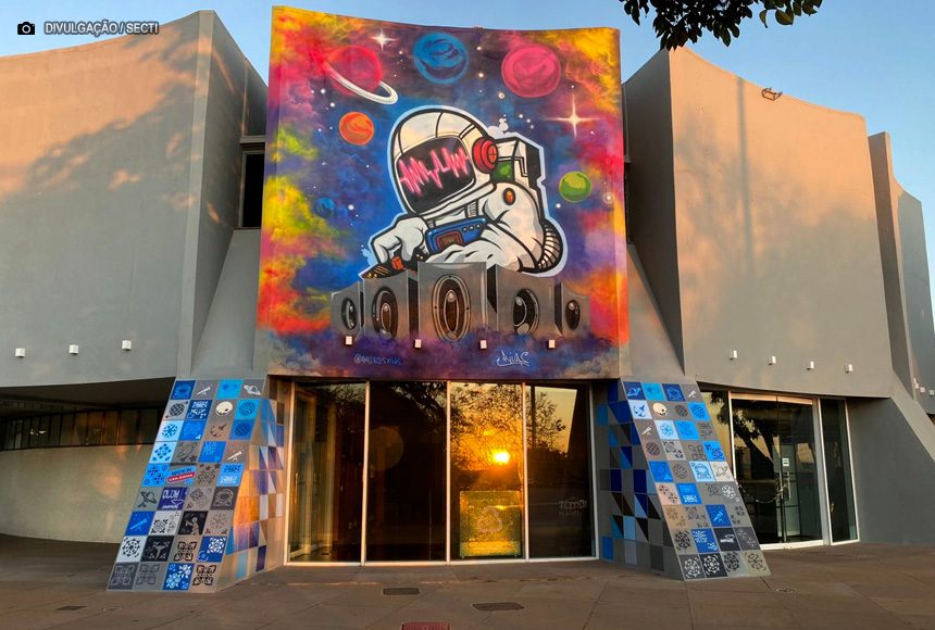 O painel, que ocupa uma das pétalas da fachada do prédio, é um legado do projeto Brasília Design Week (BDW), que tem o objetivo de valorizar a identidade brasiliense e a cadeia produtiva do design. A iniciativa promoveu uma série de ações em diversos monumentos e pontos turísticos de Brasília, como o Museu da República, a Casa de Chá e o próprio Planetário.