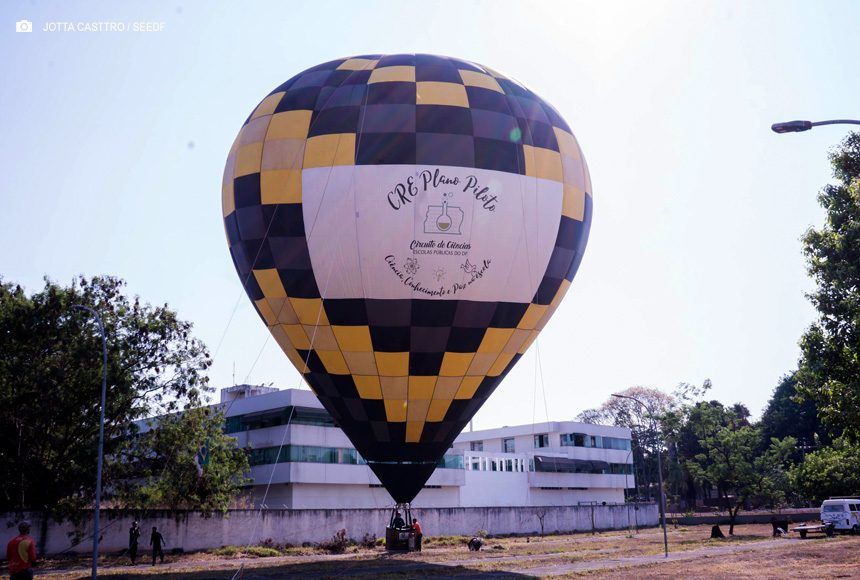 Uma das surpresas no evento foi o enorme balão, trazido pela Regional de Ensino, com os dizeres Ciência, conhecimento e paz na escola. “O intuito do projeto de balonismo foi que as crianças pudessem entender como funciona o voo com o balão, e a ciência por trás do mecanismo de ar quente que faz o balão flutuar”, explicou Juciele Ortiz, chefe da Unidade de Educação Básica (Unieb) da Regional de Ensino.