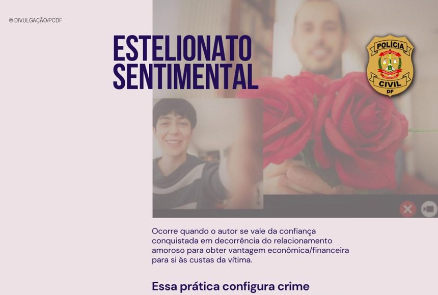 A Polícia Civil do Distrito Federal (PCDF) lançou nesta quinta-feira (22) uma cartilha digital sobre o estelionato amoroso com orientações às mulheres para não cair nesse golpe. Na publicação, há informações que ajudam a mulher a identificar se está sendo vítima de tal crime, bem como os procedimentos necessários para proceder à denúncia.