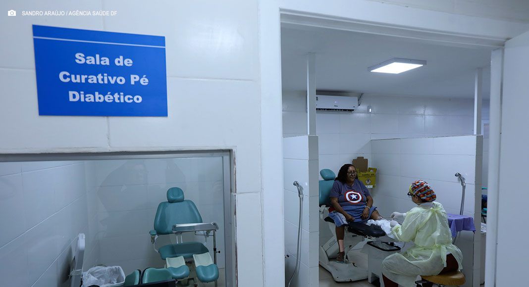 Policlínica do Gama disponibiliza atendimento especializado no Ambulatório do Pé Diabético, uma complicação grave do diabetes mellitus não controlado que pode levar à amputação de membros. O serviço foca no acompanhamento de saúde e no autocuidado para prevenir e tratar as lesões, como no caso de Luzineide da Silva, 56 anos, diagnosticada há 15 anos com diabetes tipo 2 e paciente do ambulatório há três anos.