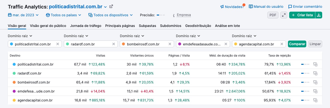 PD realiza monitoramento, ao longo dos últimos anos anos e, dentre a blogosfera do Distrito Federal, PD exerce forte liderança de audiência, quando confrontado com os principais sites que cobrem as notícias do DF.