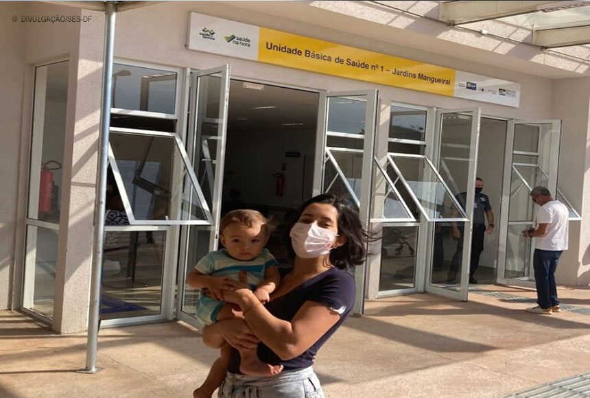 A mamãe Marcela Osório, 30 anos, não desperdiçou a oportunidade e foi logo cedo, na manhã desta terça-feira (10), até a UBS 1 do Jardins Mangueiral para garantir sua dose. Ela aproveitou para colocar em dia a caderneta de vacinação do filho caçula Bernardo, de 8 meses, que recebeu as vacinas contra gripe e sarampo.