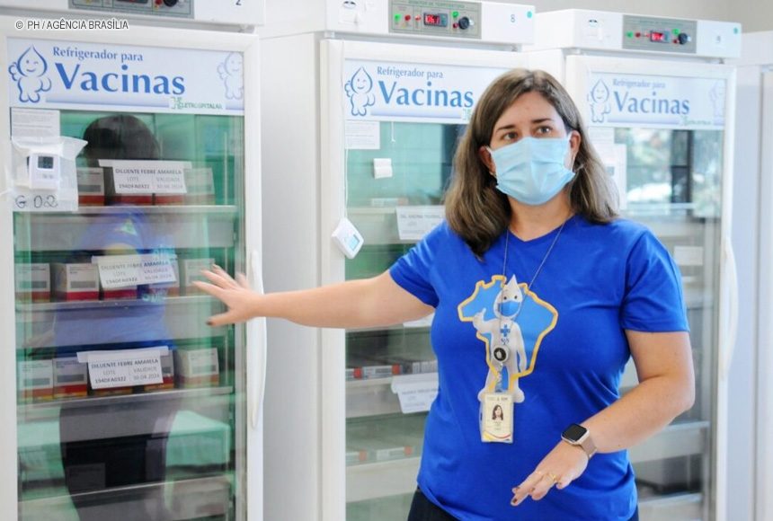 Todas as nossas vacinas são distribuídas pelo Ministério da Saúde. O GDF não compra nenhuma vacina ou imunobiológico. São quatro fábricas produtoras de vacinas no Brasil: [Instituto] Butantan, Fiocruz [Fundação Oswaldo Cruz], Funed [Fundação Ezequiel Dias] e [Laboratório Médico] Vital Brasil. Há outras vacinas que são compradas no exterior ou em empresas privadas. Uma vez por mês, solicitamos ao governo federal o quantitativo de que precisamos para atender as unidades por 30 dias.