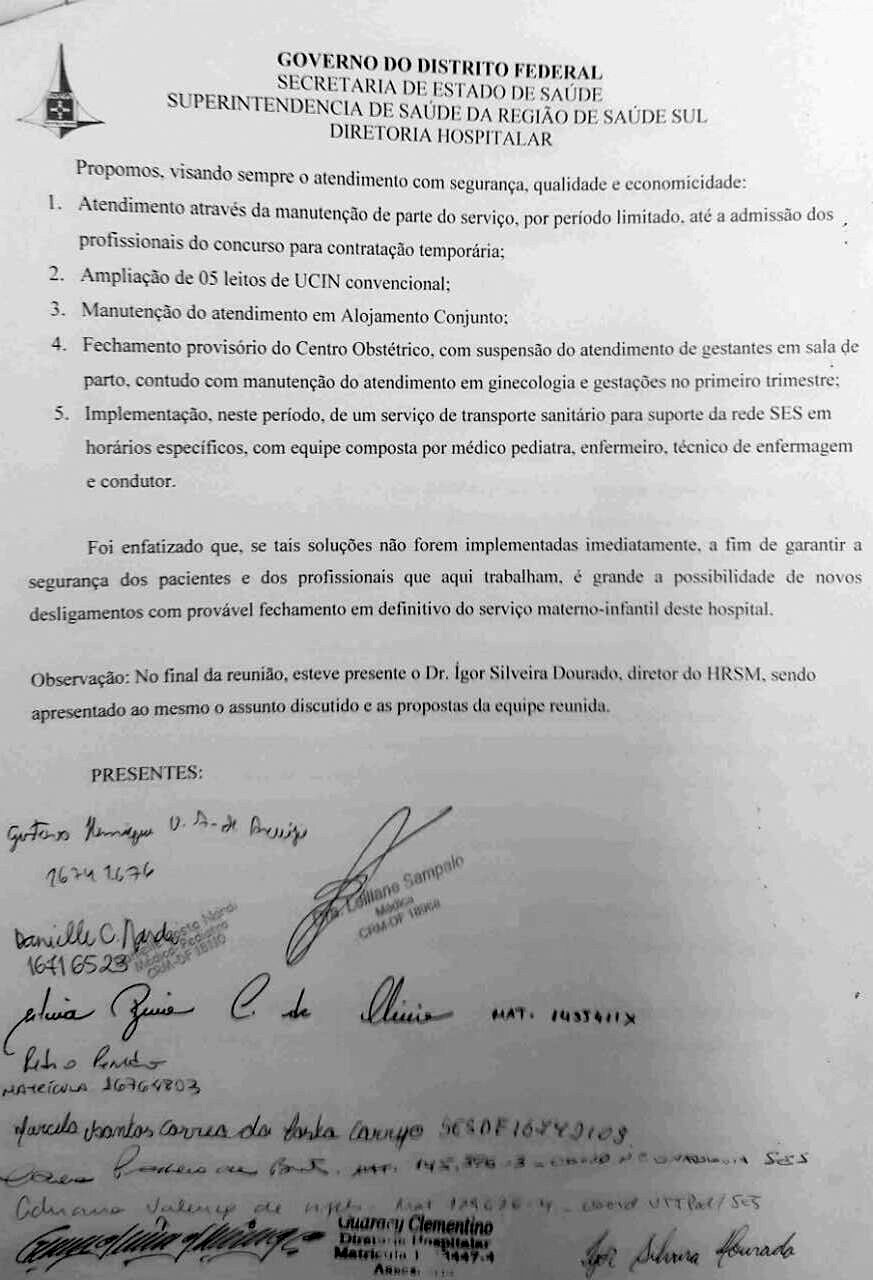 Além disso eles estão transferindo obstetras e ginecologistas para o HRAN e o hospital do Gama. “Se o problema é só o neonatal para quê essas transferências desses profissionais se o Hospital de Santa Maria está com falta de médicos?”, questionou.