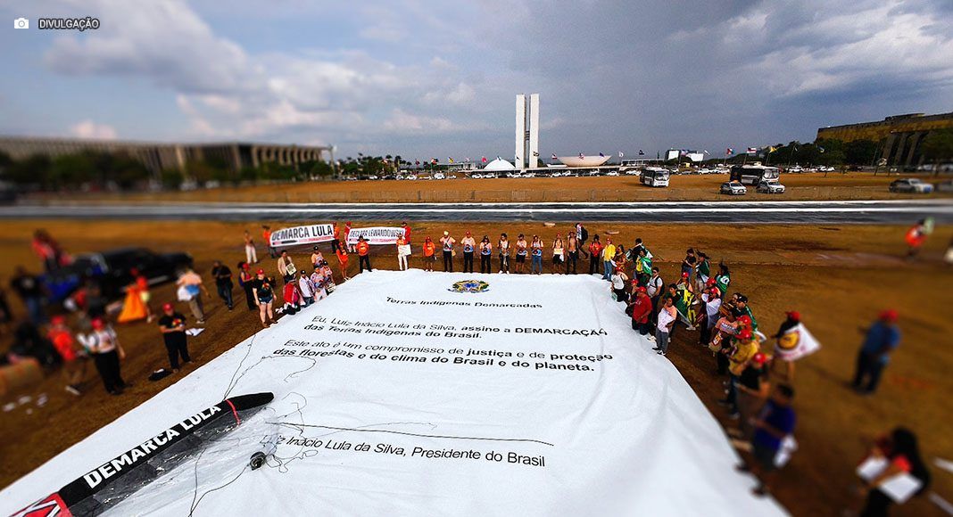 A manifestação, promovida pela Articulação dos Povos Indígenas do Brasil (APIB) com apoio da Avaaz e outros movimentos sociais, ocorreu durante a Pré-COP Indígena, evento que antecede as negociações climáticas oficiais. Os líderes levaram um documento gigante até as proximidades do Ministério da Justiça, simbolizando que a decisão de avançar com as demarcações está nas mãos do poder Executivo.