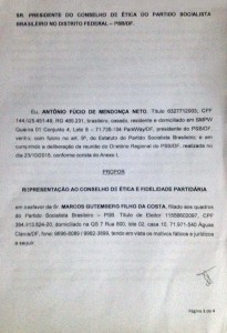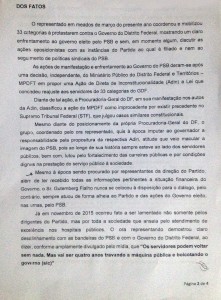 Fialho vai além e coloca em xeque o que considera um contrassenso a frase de abertura da representação: “O representado coordenou e mobilizou 33 categorias a protestarem contra o Governo do Distrito Federal, mostrando um claro enfrentamento ao governo eleito pelo PSB e sem, em momento algum, discutir as ações oposicionistas com as instâncias do partido ao qual é filiado e nem ao seguimento de políticas sindicais do PSB”.