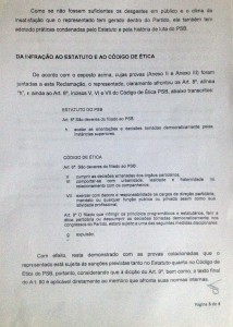 No entanto a defesa de Fialho faz diversas contestações técnicas, políticas e, principalmente, questiona a consistência de prova documental apresentada pelo PSB para justificar a expulsão do PSB.